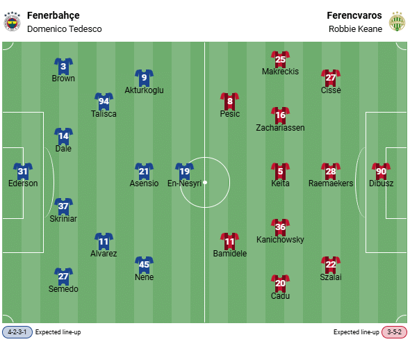 Ferencvaros Budapest got off to an almost perfect start in the league phase of the UEFA Europa League. The Zöld sasok (English: the Green Eagles) picked up ten out of a possible twelve points and are currently in third place, which would give them a direct ticket to the round of 16. But Fenerbahce has also recovered after its 1-3 defeat in Zagreb and has recently picked up seven out of a possible nine points. If Domenico Tedesco’s team wins at home against Ferencvaros, the Sari Kanaryalar (the Yellow Canaries) will catch up with the Hungarians.