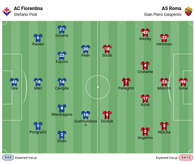 A total of 197 matches have already taken place between the two teams, and the head-to-head record is fairly even overall. With 69 wins, AS Roma is only slightly ahead. However, the Giallorossi have won only one of their last five Serie A games against Fiorentina (two draws, two defeats). The Viola have also not lost any of their last four home games against the Wolves (three wins, one draw).