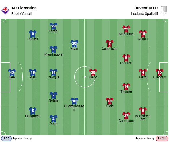 On the other hand, the Italian record champions defend their own penalty area quite skillfully and have also shown hardly any weaknesses from set pieces so far. While the Viola have conceded seven goals from set pieces, the Old Lady has only picked the ball out of her own net once following a set piece.
