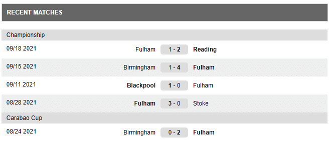 Last Fulham games:
