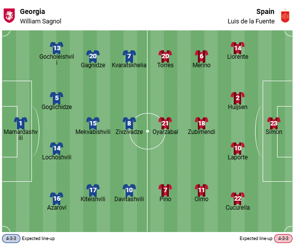 The two nations have met eight times so far, with La Furia Roja prevailing over Georgia in seven of those eight encounters. The Jvarosnebi have only won one friendly match, which took place in Getafe in the summer of 2016. They lost 4–1 to Spain in the round of 16 at EURO 2024 in Germany and 2–0 in the first leg of the World Cup qualifier in Elche.