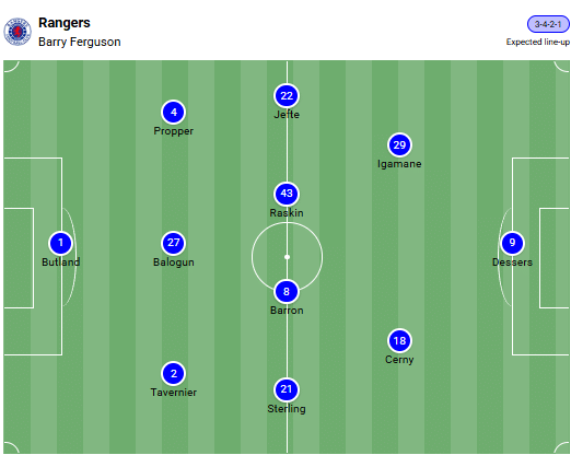 Barry Ferguson has to do without three players in the squad against the Basques. There are no other personnel concerns at the moment for the Rangers. Compared to the team that played last weekend, no major changes are expected at Glasgow Rangers.