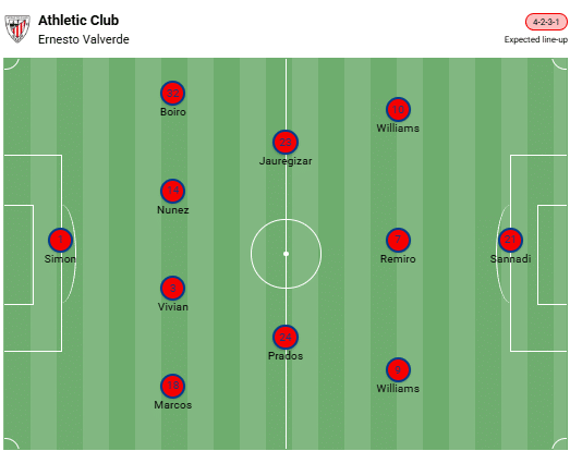 Ernesto Valverde has to do without four players in the squad against Glasgow Rangers. Bilbao have no other personnel concerns. Compared to the team that last played in La Liga, no major changes are expected in the lions from the Basque Country.