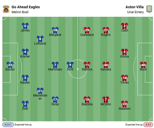 The two teams have never crossed paths in an international competitive match before. For the Dutch, it is even their first ever European encounter with an English club. This means that there is no head-to-head data available that could be included in our prediction for Go Ahead Eagles vs. Aston Villa.