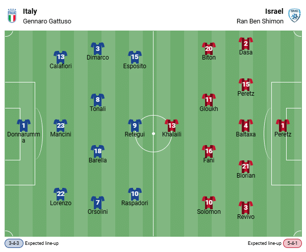 This does not seem unlikely, as both teams have only failed to score against Norway so far. Italy has also won its last four games in a row and is, of course, the favorite going into this match. In our Italy vs. Israel prediction, we believe the Italians will win again.