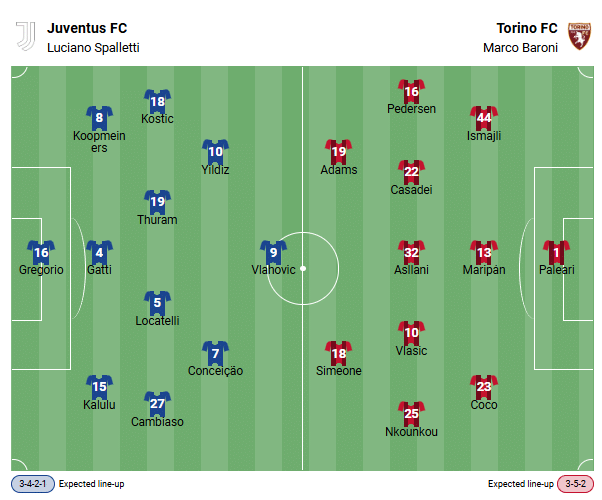 Under interim coach Massimiliano Brambilla and then under new coach Luciano Spalletti, the hosts have returned to winning ways with two recent victories. In view of this, the betting odds for a third consecutive victory and a margin of at least two goals are recommended for the derby between Juventus and Torino FC.