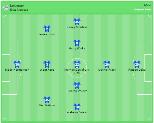 With 66 goals in 31 league games (⌀ 2.13), the home side have the best offense in the league. Enzo Maresca’s side have only failed to score three times and have found the back of the net in 90% of their matches. A goal from the favorites therefore seems almost set in stone. The hosts are also difficult to figure out due to the breadth of their squad, with Jamie Vardy, Patson Daka, Kelechi Iheanacho, Stephy Mavidi and Kiernan Dewsbury-Hall providing enormous quality in attack.