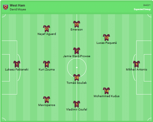 Predicted West Ham line-up: