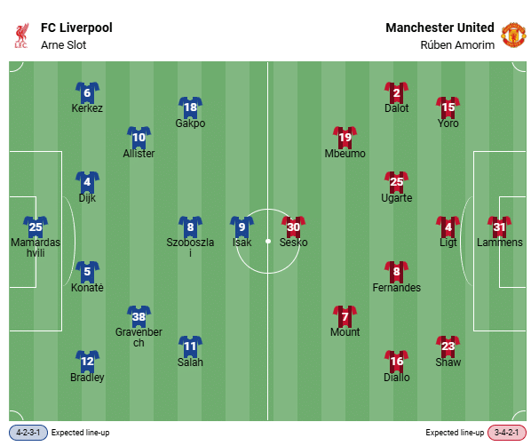 Across all competitions, coach Arne Slot’s team lost three competitive games in a row and was therefore overtaken by Arsenal FC in the PL standings. Despite this unexpected slump, the Reds are still the favorites ahead of Liverpool’s derby clash with Manchester United. Not least against the backdrop that the Red Devils last managed to take three points at Anfield Road in the English top flight under Louis van Gaal.