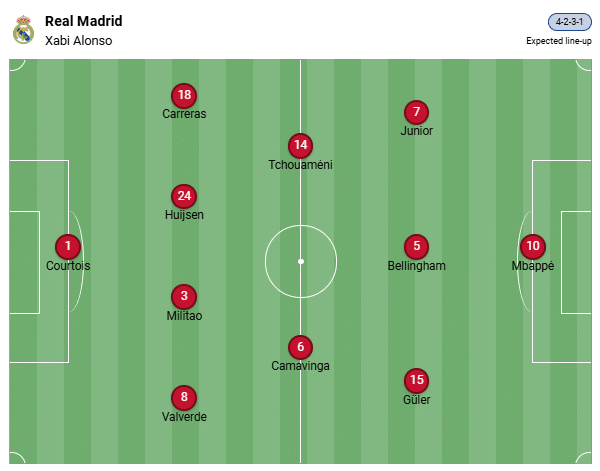 While coach Xabi Alonso’s team has played a very strong season so far, winning 13 of 14 competitive games, the Reds are still struggling. After six defeats in seven matches, the reigning English champions finally celebrated a win again at the weekend against Aston Villa. Nevertheless, the differing form curves ahead of the Liverpool vs. Real Madrid match mean that the initial prediction leans more towards the visiting team.