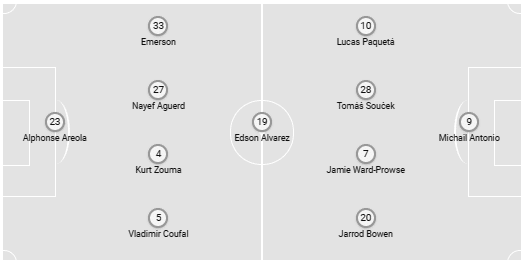 One is James Ward-Prowse, a late signing from relegated Southampton who has scored in all four PL games for his new club. On the other, winger Jarrod Bowen, who has scored in all three of his Hammers’ PL outings this season.