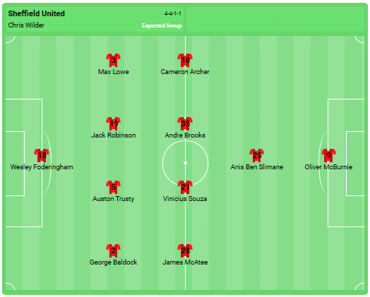 Predicted line-up for Sheffield United: