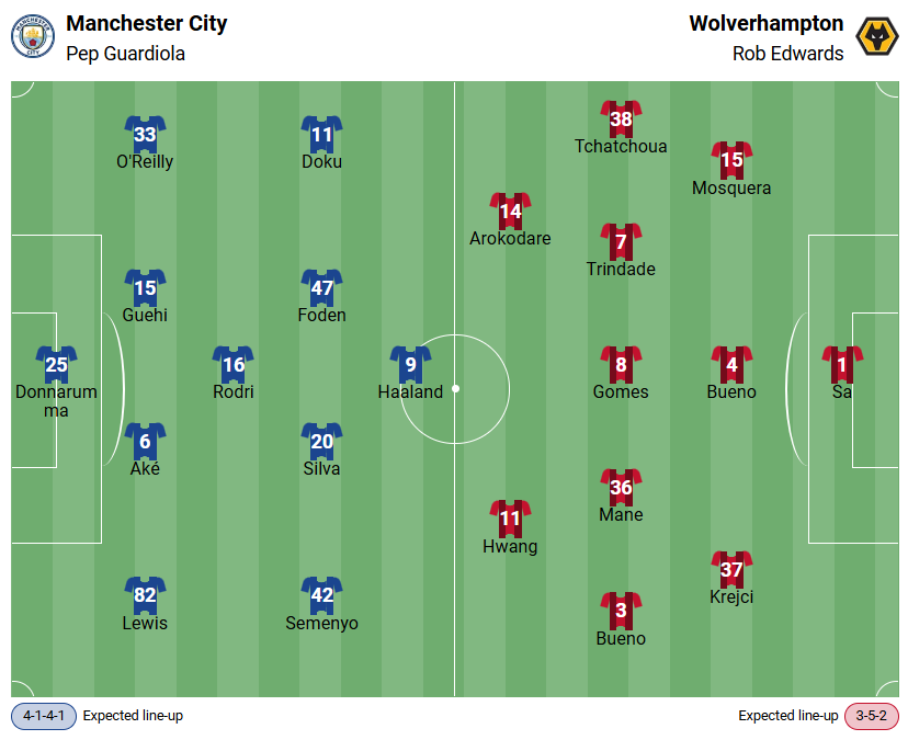 Manchester has won ten of its last eleven Premier League games against the Wolves, with the exception of a 2-1 defeat at Molineux in September 2023. The Wolves have also won only one of their eleven Premier League away games against City (1-1-9) and have lost the last five in a row.