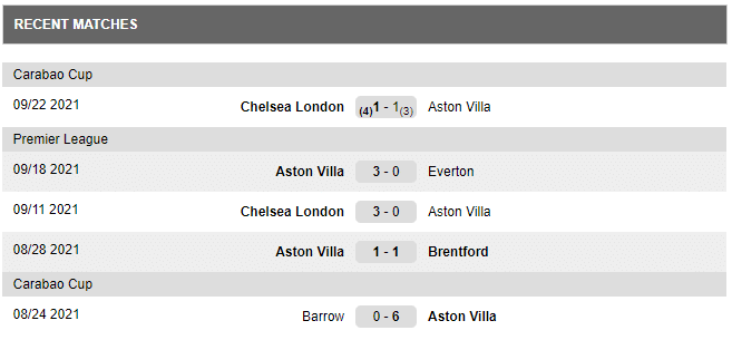 Manchester United – Aston Villa Direct Comparison / H2H Record