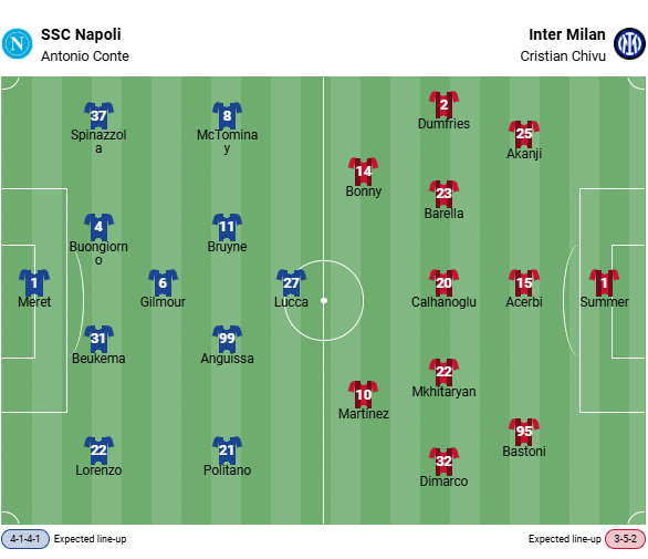The Neapolitans have recently suffered two defeats in a row, but are eager to make amends after their embarrassing 6-2 defeat in Eindhoven. The visitors from Lombardy, on the other hand, have regained their confidence, maturity, and ease after six consecutive wins. Defensively, Chivu’s team is outstanding. The trend for the black and blue is very positive.