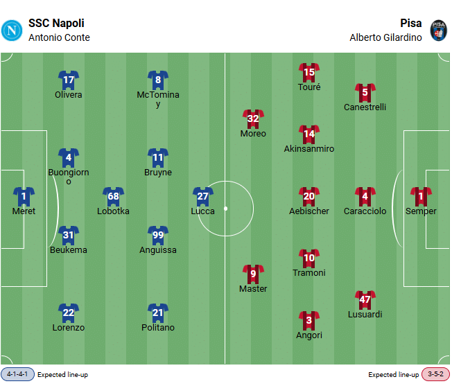 The bookmakers’ betting odds for the upcoming match between Napoli and Pisa also clearly favor the home side.