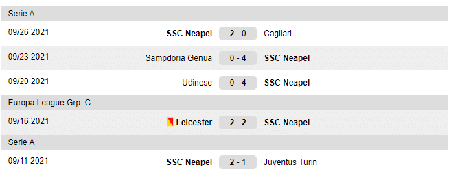Last matches played by Napoli: