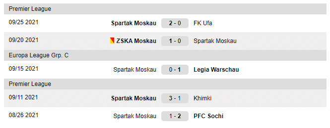 Last matches played by Spartak Moscow:
