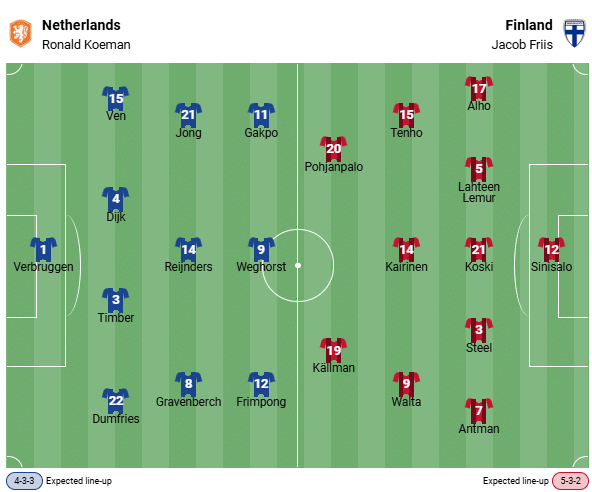 The Finns, on the other hand, need an away win to keep their slim chances of qualifying for the World Cup alive, but they are not really an attacking team by nature. Instead, we expect to see a very organized defensive formation with a back five, which is why the prediction of a low-scoring match between the Netherlands and Finland seems very reasonable.
