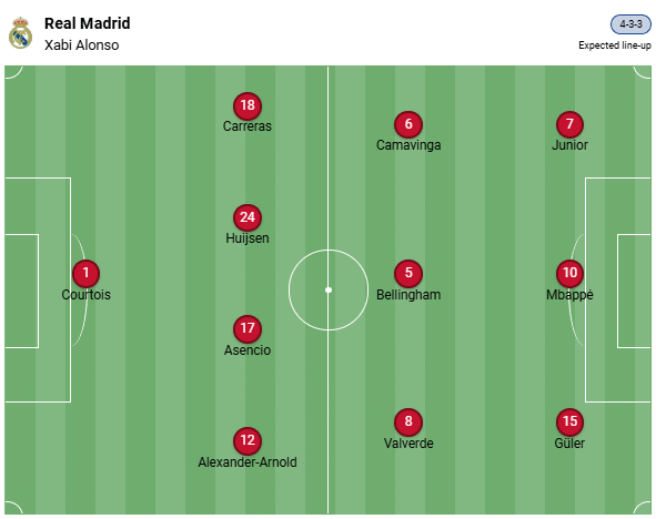 Meanwhile, two players are also eyeing individual milestones. Federico Valverde could become the third Uruguayan to reach 70 Champions League appearances in Greece, while Vinícius Júnior would draw level with Kaká (30) in second place among Brazilian CL goalscorers with his next goal.