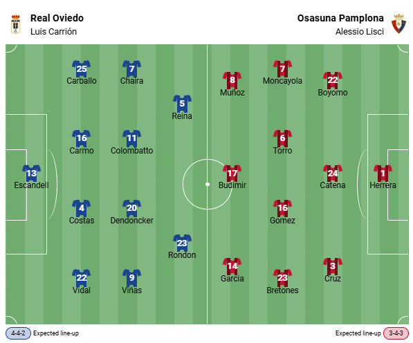 In any case, a goal fest is not to be expected at the Estadio Carlos Tartiere. The Azules have scored just two goals in five home games and have particular weaknesses in attack, while the visitors from Pamplona have scored just nine goals in their first ten league games, averaging less than one goal per game. A 0-0 draw is therefore a realistic possibility.