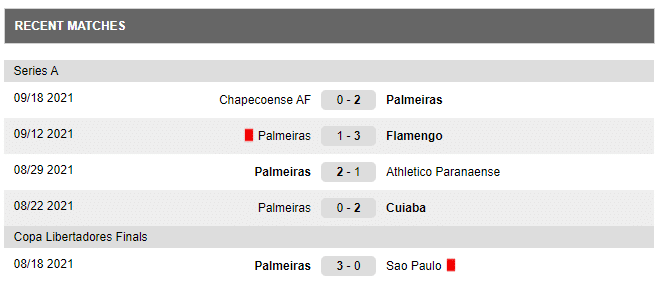 Last matches played by Palmeiras: