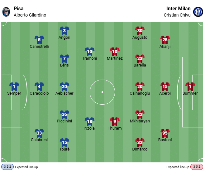 Pisa has won only three games, with three draws. And in the modern era, Christian Chivu’s team is once again the clear favorite in the Pisa vs. Inter Milan betting odds.