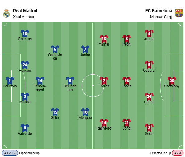 In preparation for this prestigious duel, both teams have mastered their tasks in the Champions League with flying colors. While Alonso’s Real celebrated a 1-0 home win against Juventus, Barca put on a real spectacle, thrashing Olympiacos Piraeus 6-1. The man of the match was Fermin Lopez, who scored a hat trick. But Rashford also impressed with two goals.