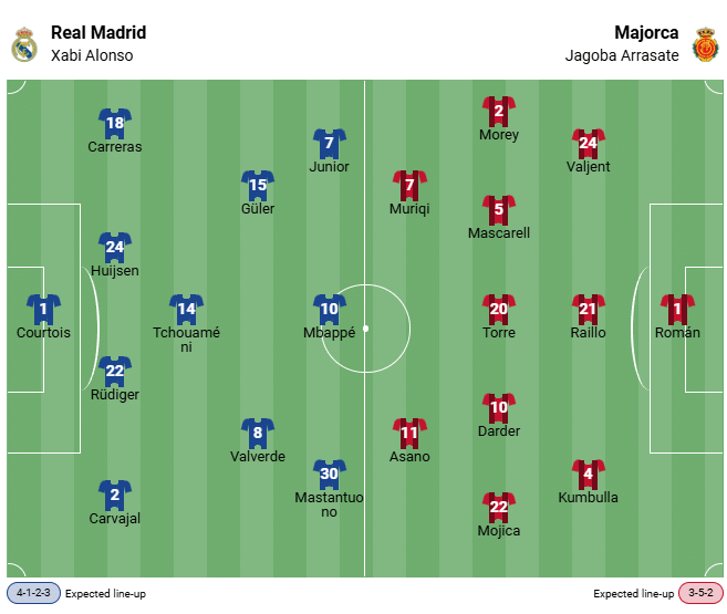 RCD Mallorca, who finished tenth in the table last season, certainly know how to defend. However, despite home advantage, they suffered a heavy defeat against FC Barcelona on the first matchday (0-3) – although they also had to cope with two red cards. Considering that defensive stability was an important factor for Los Blancos, thanks in part to new signings Dean Huijsen and Álvaro Carreras, it is therefore conceivable that the Royals will also record a clean sheet victory in their third league game.