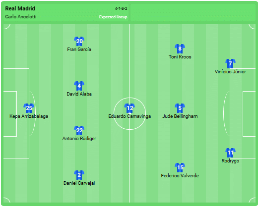 Predicted Real Madrid line-up: