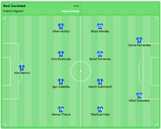 Predicted Real Sociedad line-up: