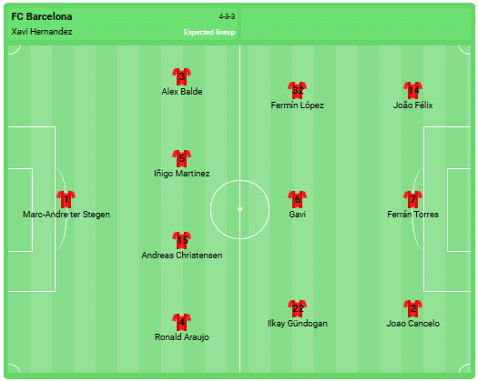 Xavi can rely on Lewandowski, Raphinha and probably Pedri again