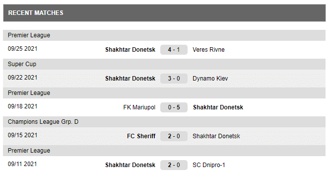 Last matches played by Shakhtyor Donetsk: