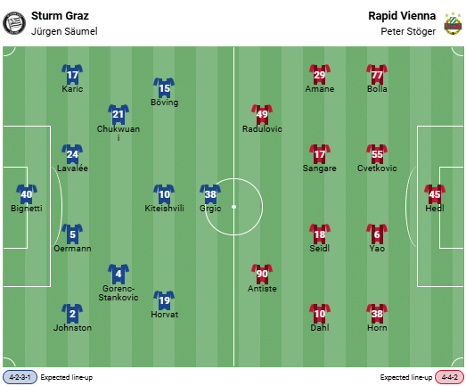 In their Bundesliga opener, the Black and Whites won 2-0 away at LASK, leaving a pretty confident impression both offensively and defensively. The ÖFB Cup match against Bischofshofen was also won comfortably 4-0. The defending champions are therefore in good early form, which I would cite as an argument in favor of the home team when it comes to predicting the outcome between Sturm Graz and SK Rapid.