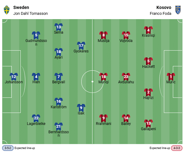 In the four previous matches between Sweden and Kosovo, the Scandinavians have clearly had the upper hand. They won three of the four encounters, with Kosovo winning once. There have been no draws so far. Overall, the goal difference of seven to two also clearly favors Sweden. Three of the matches took place as part of the European World Cup qualifiers, while another was a friendly.