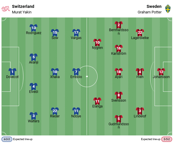 There have been 14 international matches between Switzerland and Sweden. The Swiss have won five times, with three draws and six wins for the Tre Kronor. However, only the last two direct encounters are relevant for the upcoming match. At the 2018 World Cup, Sweden narrowly won their round of 16 match 1-0 against Switzerland and sensationally reached the quarter-finals.