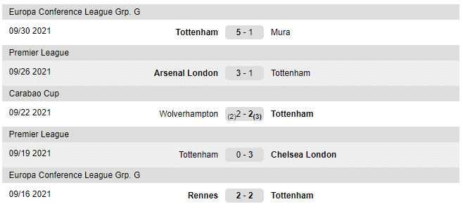 Last matches played by Tottenham: