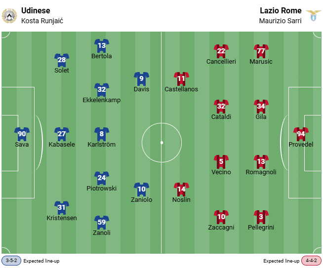 The two clubs have faced each other 93 times in total. Lazio lead the overall record with 42 wins. Udinese have recorded 27 wins, with 24 draws. The Bianconeri’s home record against the team from the capital is not much better, with 14 wins in 46 games.