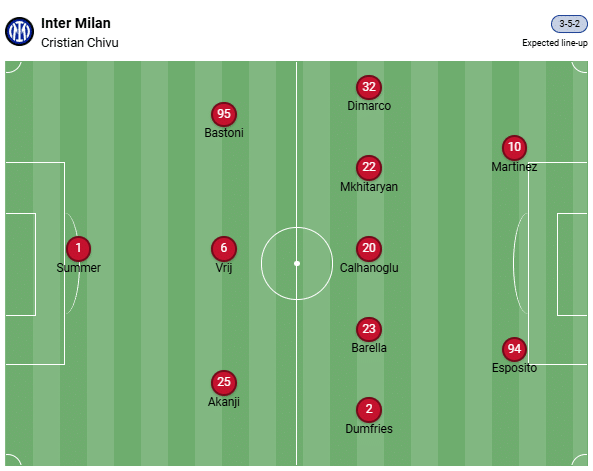 In goal, Yann Sommer is underlining his impact: Since the start of the 2023/24 season, no other keeper in the Champions League has prevented more goals based on xG on target (+6.98; 19 goals conceded with 25.98 xG). With this axis and the current defensive stability, Cristian Chivu’s team travels to Belgium as the clear favorite.