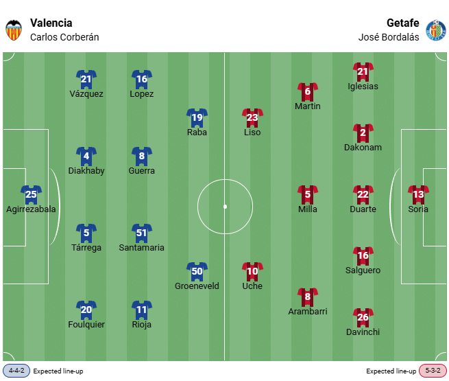 The two teams have met 40 times in La Liga. The record favors the hosts, who have won 19 of these duels and lost only 12 times. Across all competitions, the overall record stands at 21-10-14. Getafe has been waiting for a win against its opponent for three games. Last season, there was a heavy 0-3 defeat in Valencia.