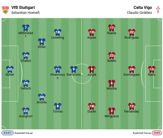 So far, the two clubs have only crossed paths in the round of 16 of the 2000/01 UEFA Cup. Back then, the first leg in Stuttgart ended in a goalless draw, before Celta Vigo recorded a 2-1 home win in Galicia in the second leg to secure their place in the quarterfinals. Almost a quarter of a century later, the Swabians now have the chance to take revenge on the Celestes.