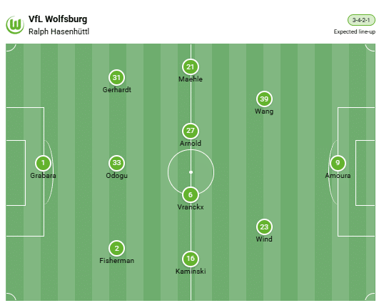 Head coach Ralph Hasenhüttl still has to overcome personnel concerns in defense. Major changes compared to the last starting lineup are not expected. With 10 goals this season, Mohamed Amoura is the top scorer for VfL Wolfsburg.
