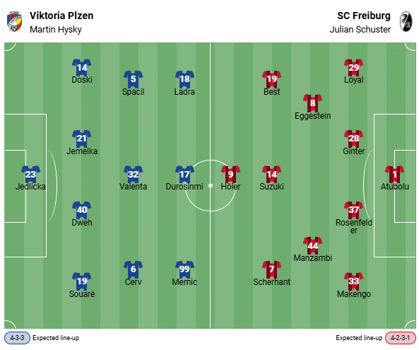 The two clubs will face each other for the first time in European competition on Thursday evening. SC Freiburg has played clubs from Czechia four times. The record is completely balanced, with one win and two draws each. For Pilsen, however, matches against German representatives have not been crowned with success so far. In nine attempts, they have only managed two draws. Zero wins but seven defeats round off the H2H.
