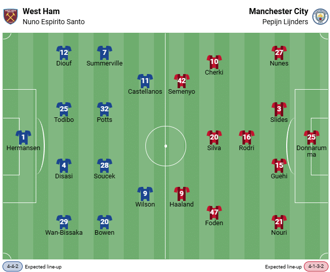 On top of that, Erling Haaland is in top form against the Hammers, having scored at least a brace in each of the last three matches.