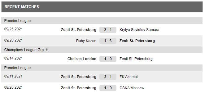 Russian Federation Zenit St. Petersburg – Statistics & current form