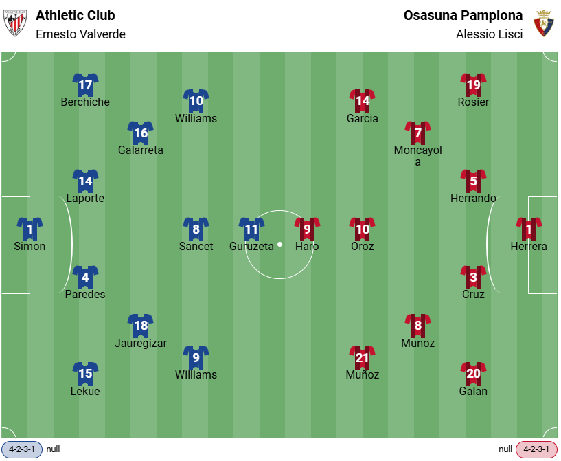 Athletic Bilbao – Osasuna Direkt jämförelse / H2H-statistik