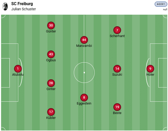 Fem av de senaste sju hemmavinsterna mot SCF har dessutom varit utan insläppta mål. Det första mötet i Breisgau i mitten av december slutade däremot 1–1, efter att Bellingham fått rött kort i den 53:e minuten och Lucas Höler i den 75:e minuten kvitterade Bensebainis ledningsmål till slutresultatet.