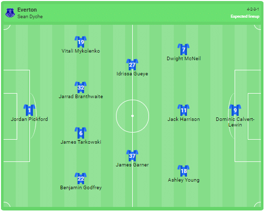 Förväntad laguppställning för Everton: