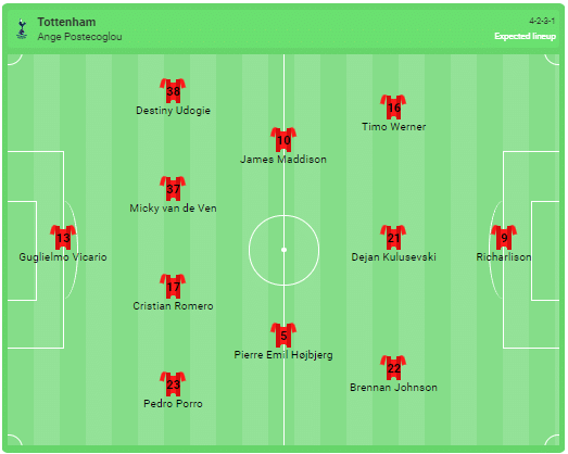 Förutsedd laguppställning för Tottenham: