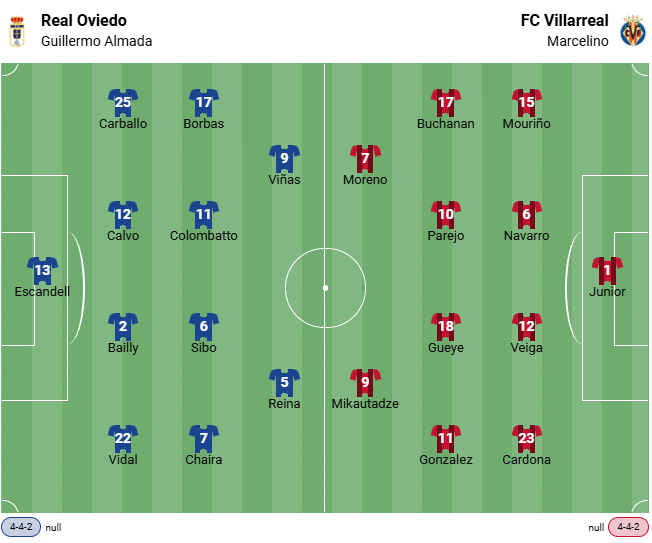 Oviedo – Villarreal Direkt jämförelse / H2H-statistik